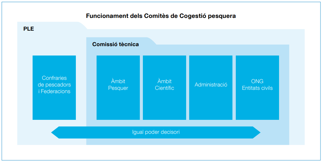 Vetlla per una bona gestió dels recursos mitjançant l’aplicació del nou model de cogestió basat en la gestió adaptativa i el principi de precaució. El seu principal repte és fer un pas al costat per facilitar l’apoderament i la participació dels altres membres del instrument de cogestió.