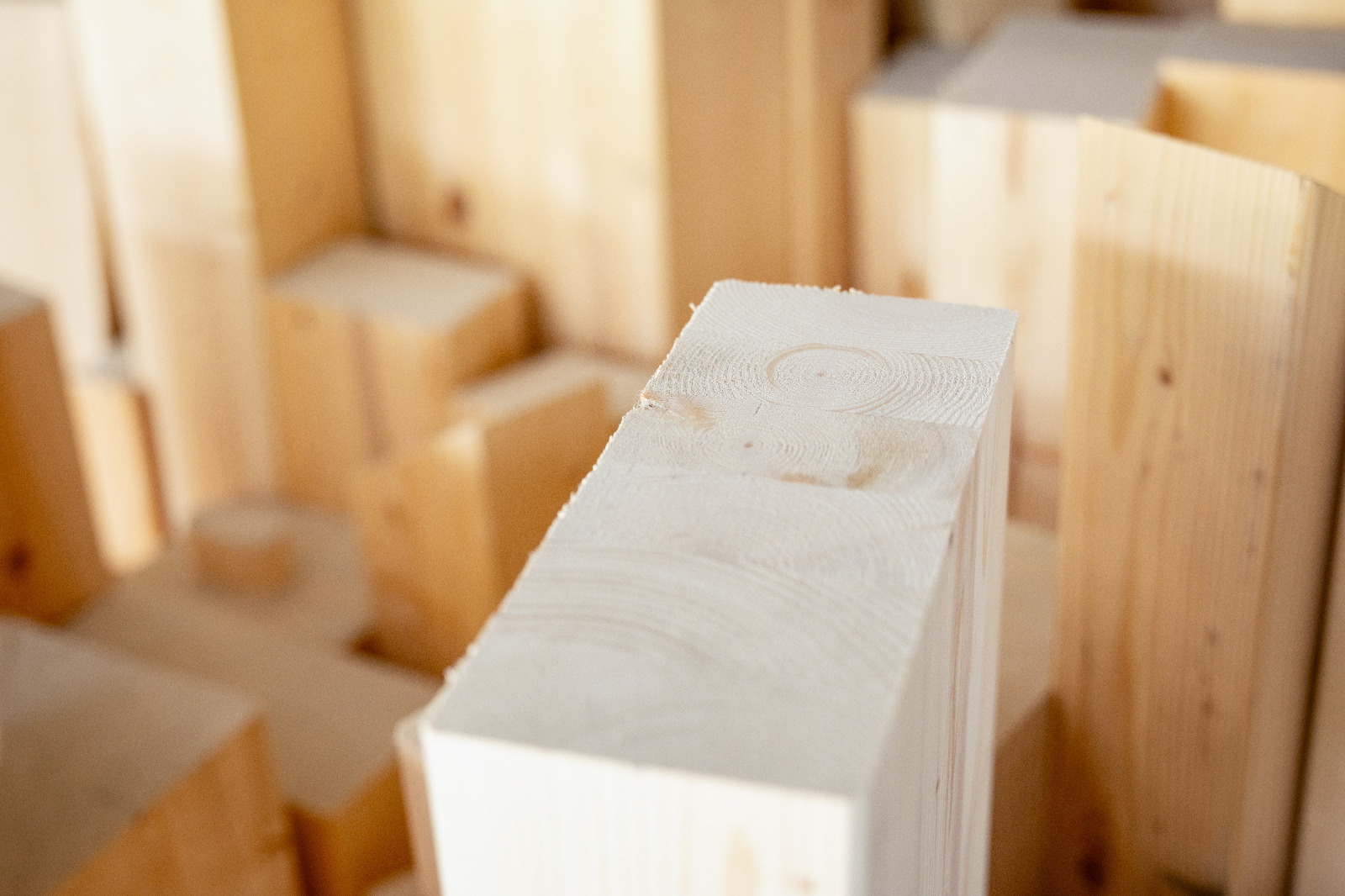 Per finalitzar, encolem les lames i obtenim panells CLT o Biga laminada que ens permetran realitzar els prefabricats en 2D a taller per acabar muntant els edificis en obra en una setmana aproximadament.