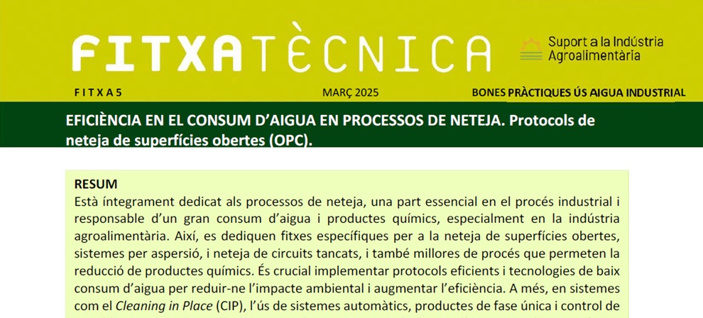 FT nº05: Eficiència en el consum d’aigua en processos de neteja. protocols de neteja de superfícies obertes (opc)