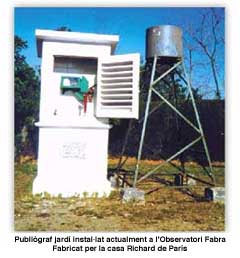Pluviògraf jardí instal·lat actualment a l’Observatori Fabra