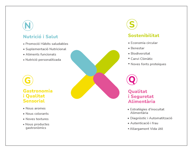 En el sector de la qualitat sensorial i la gastronomia treballen amb desenvolupadors d’additius, de tecnologies emergents i de productes gastronòmics, i amb el canal HORECA, tots ells preocupats per satisfer el consumidor. Per últim, i amb un interès creixent, en l’àmbit de la sostenibilitat, amb agents de la cadena de valor interessats en economia circular, l’emergència climàtica, la biodiversitat i les noves fonts proteiques.