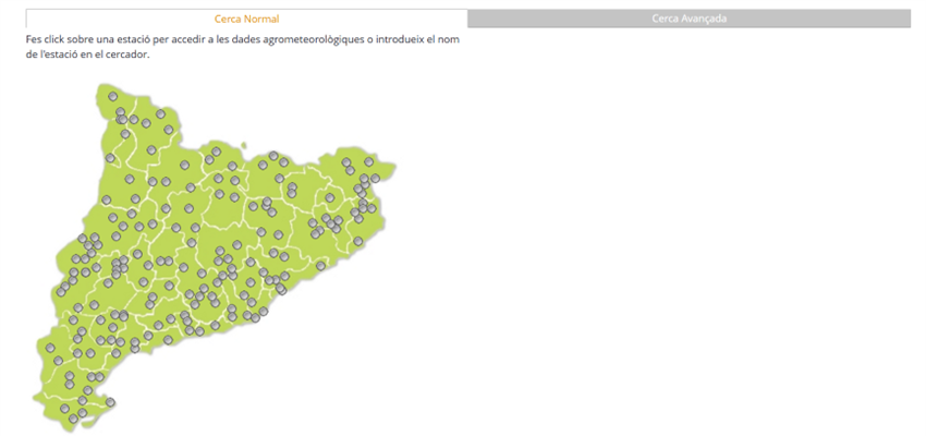 Quan introdueixes les dades, és important triar la comarca correcta on es troba la finca. Si hi ha estacions meteorològiques properes d’altres comarques, pot ser més convenient seleccionar les dades d’una estació de la comarca veïna si s’ajusten millor a les condicions locals. Si les explotacions estan molt disperses, el millor és configurar cada finca amb la seva estació meteorològica més pròxima.