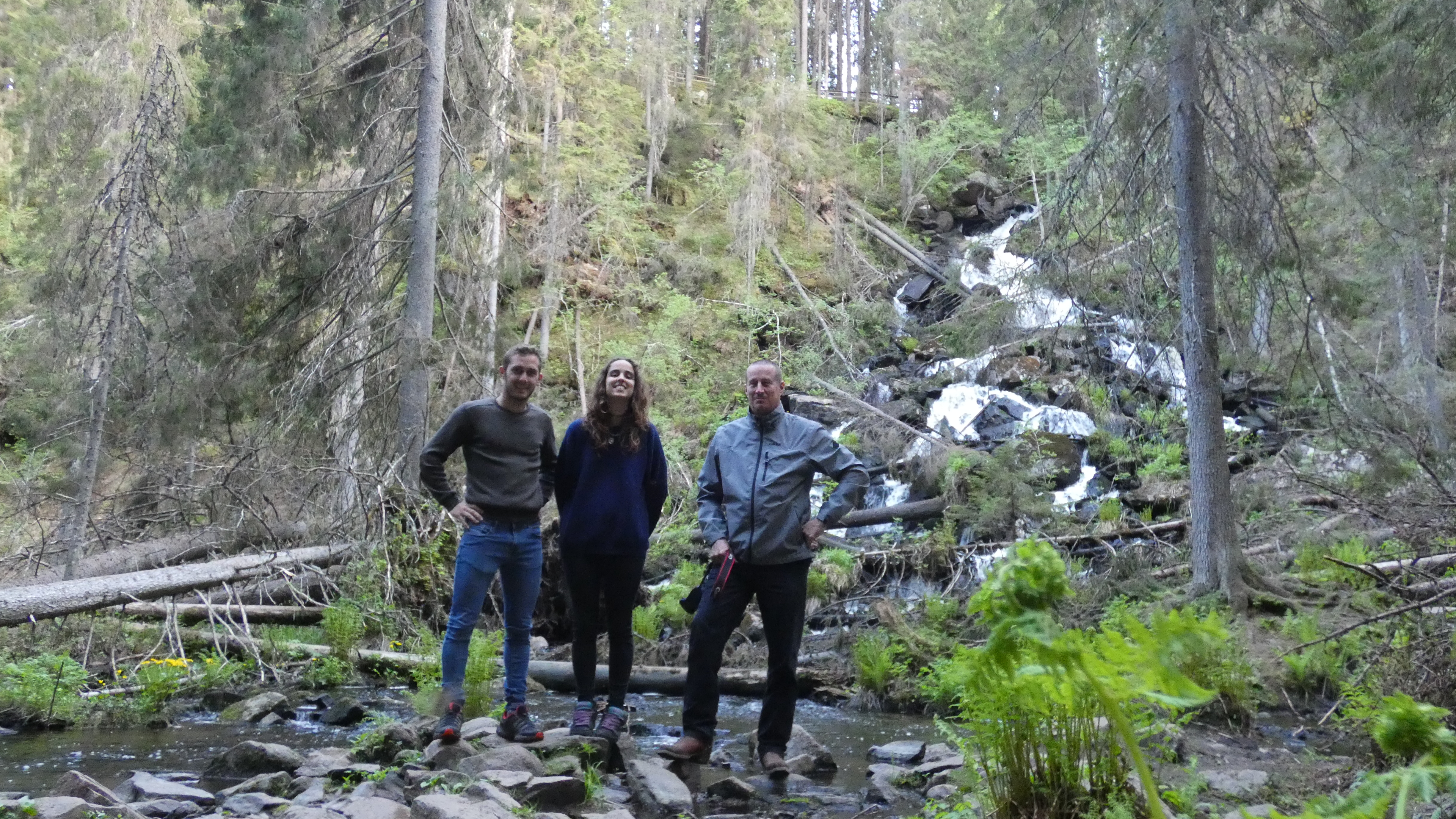 La Laia amb dos companys durant la seva estada a Finlàndia