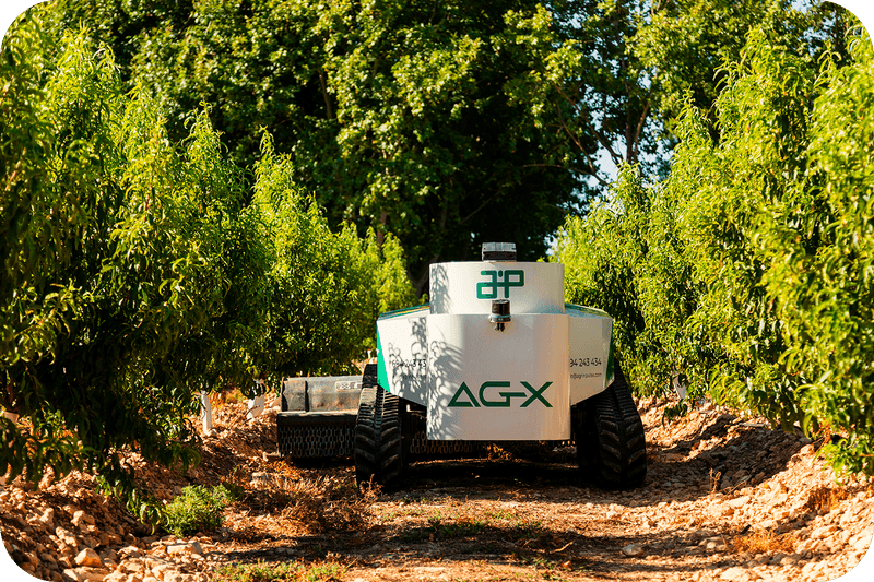 L’AG-X està dissenyat per fer les mateixes tasques que un tractor convencional per a conreus d’arbres fruiters, però de manera elèctrica i amb capacitat d’autonomia.